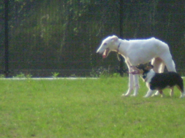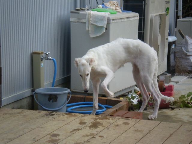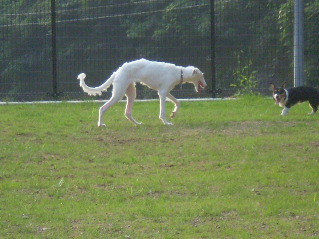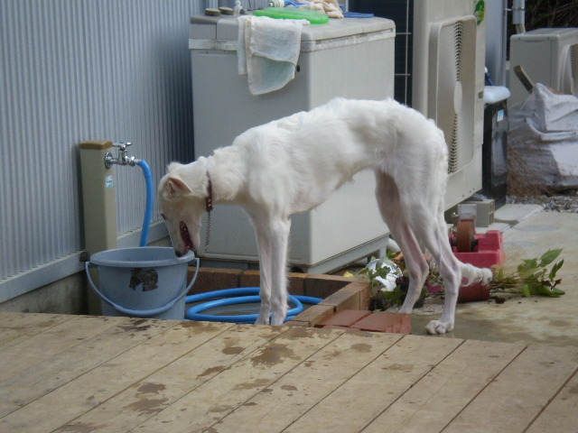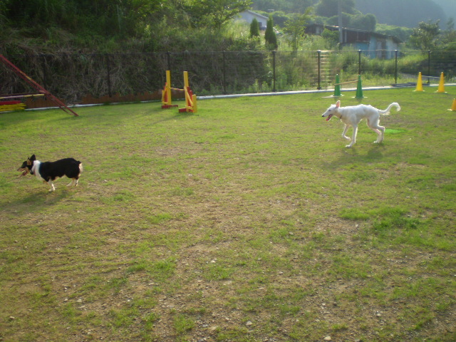夕方だったので、西日が厳しくて走っては水分補給、遊んでは水分補給