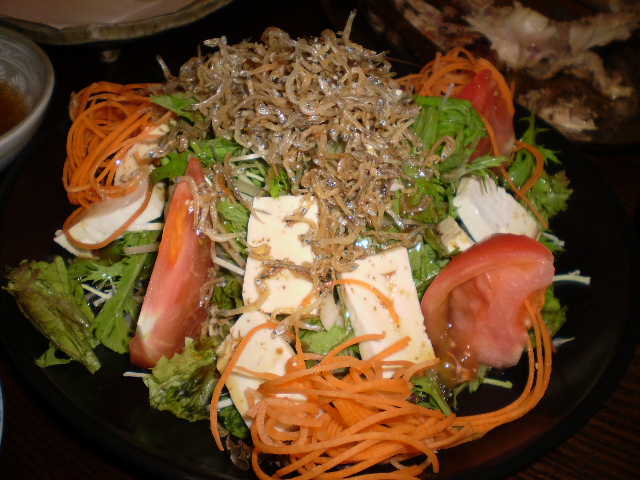 豆腐と水菜のカリカリじゃこ和風サラダ         ごぼうチップス