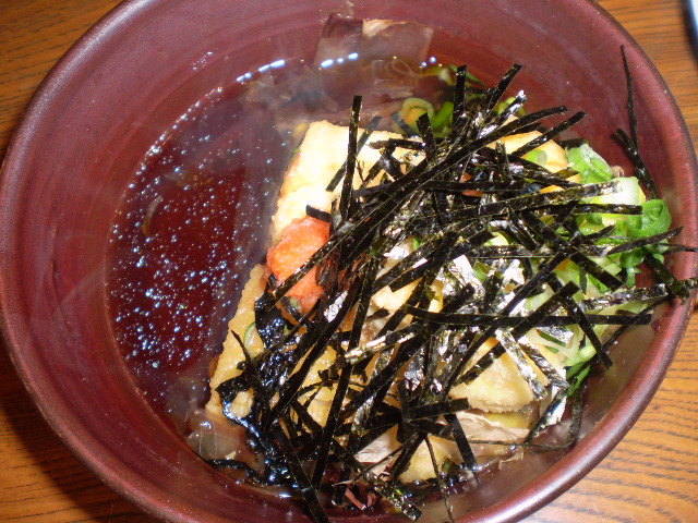 川海苔天ぷら  長芋ときゅうりの酢の物