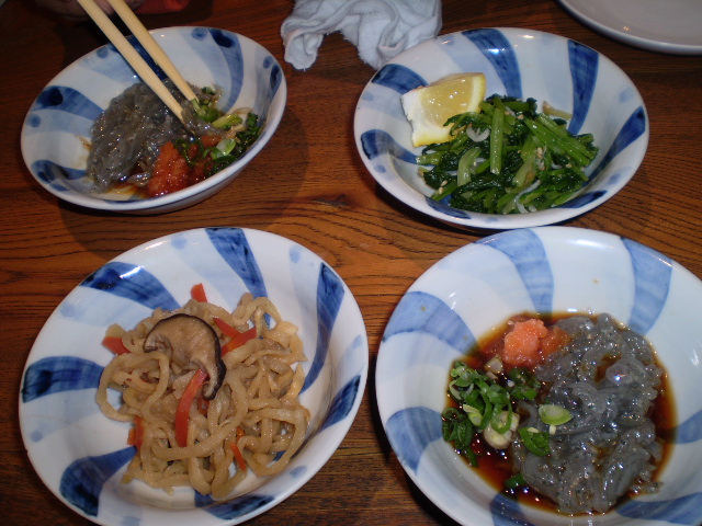 突き出しの どろめ 切干大根 小松菜のおひたし
