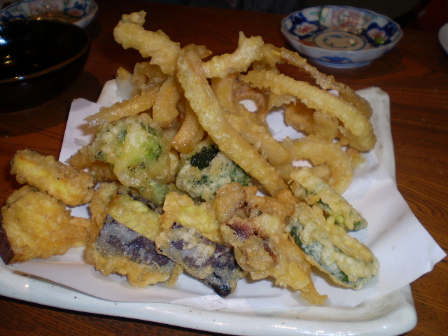 野菜てんぷら(ハチク なす さつま芋 ズッキーニ ブロッコリ じゃがいも)