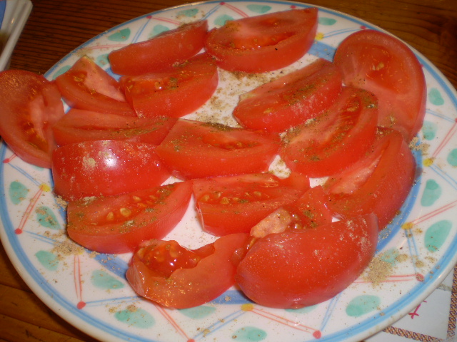 トマトサラダに振りかけられてた香辛料がなかなかにスパイシーでございました・・・