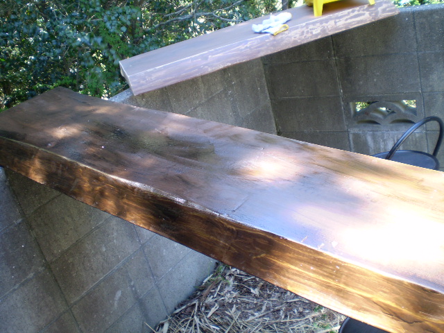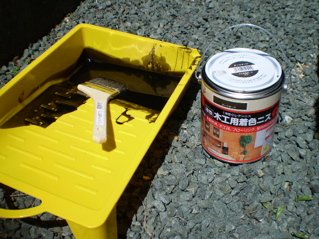 着色せずに、ふつーにニスだけ塗ればよかったものを、なにを思ったのか