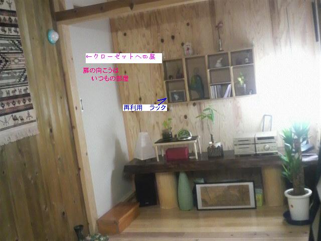 コンパネの壁には、ビデオテープを入れていたラックを再利用して