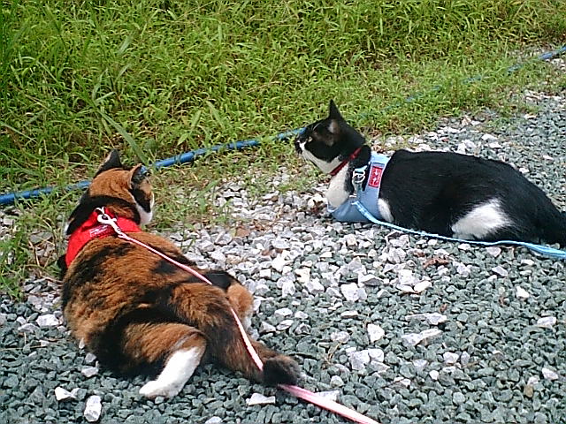 例のごとく 紐つき で庭に出し、夕飯の準備。