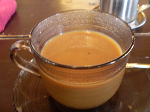 コーヒーがカップに注ぎ終わったら、底の練乳と混ぜ混ぜしていただく。