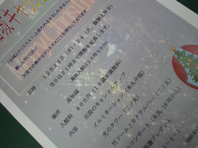 キャッスルクリスマス 23日~24日、高知城で こんな心憎いイベントが開催されるんだって♪ 行きたいなぁ~~~~!