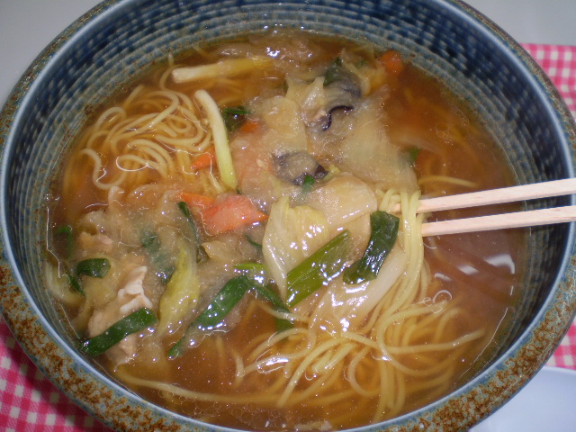 醤油ベースの汁に、野菜の具のあんかけ。
