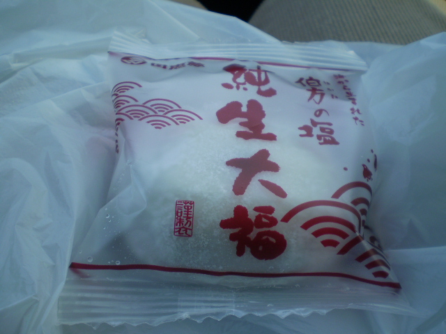 純生大福は、大福の生地に「伯方の塩」を使っているって袋に書いてある。