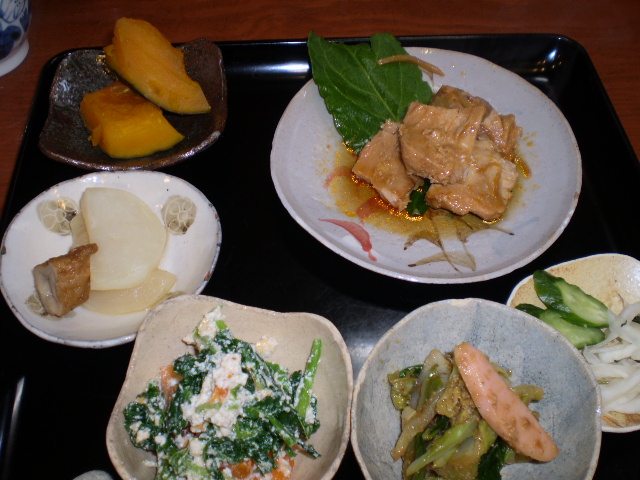 おかずは野菜中心で、メインはお魚料理でしょうか。