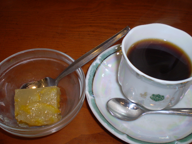 おかずの一品に かぼちゃ と デザートに ゆずゼリー がありました。