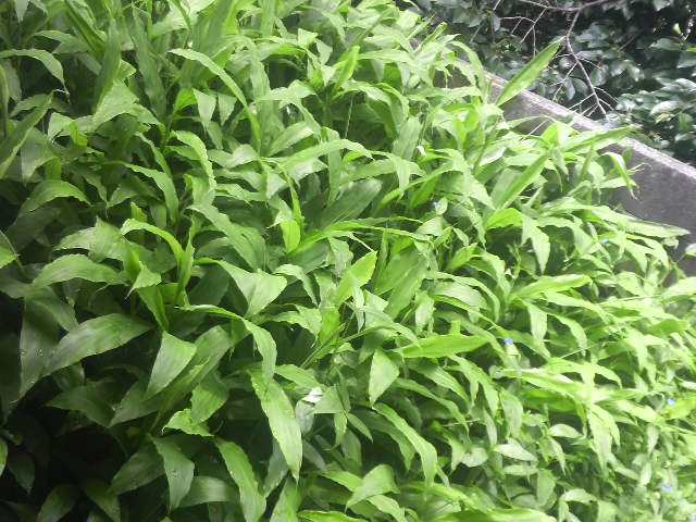 アナグラ部屋の前に茂る“ミョウガ畑”のなかで キレイな青色の存在感 『露草』 花言葉は 懐かしい関係・尊敬