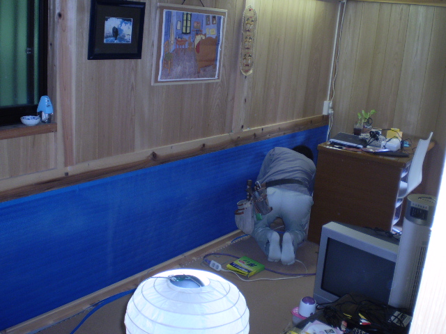常々悩まされていた『湿気』対策第一弾として、ブロックむき出しの腰壁に