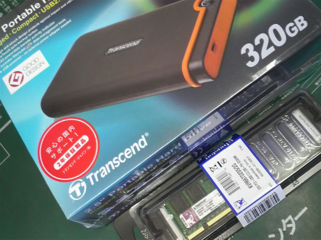 注文していた増設用のメモリと、外付けHDDが届きました。