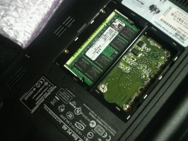 元々装着されている512MBのメモリを取り外し